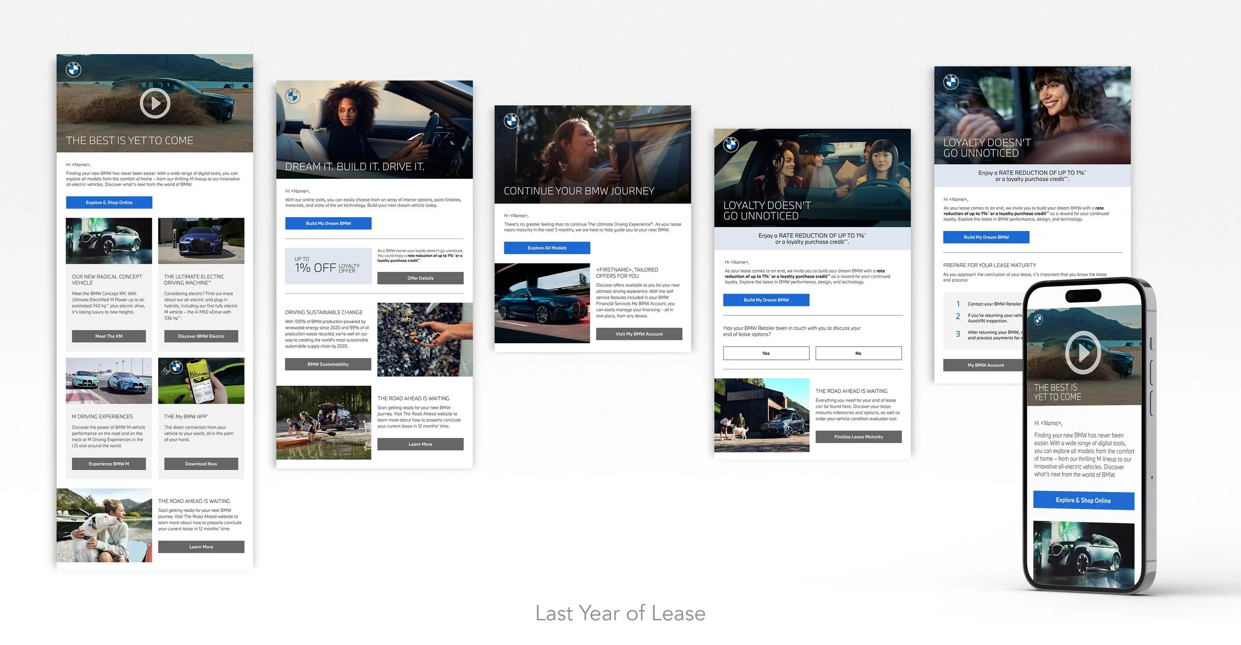 As a BMW driver enters the final year of their lease, we want BMW to be top of mind as they begin the process of deciding on their next vehicle. The Last Year of Lease communication stream is a series of emails that are designed to excite, inform, and reward BMW drivers for their loyalty. The first email drives to a short video that creates excitement by highlighting the future of performance.